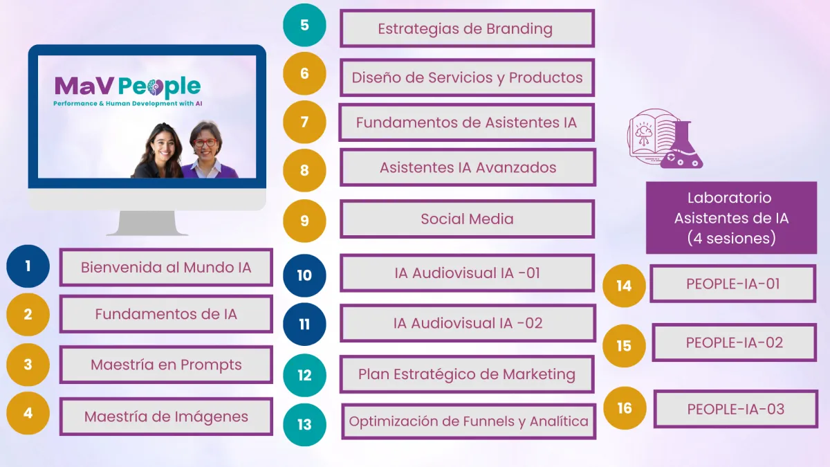 Con ADAPTAi MaV People, aprenderás a integrar herramientas avanzadas de IA, optimizando procesos, personalizando experiencias y destacándote como un referente en el mercado.