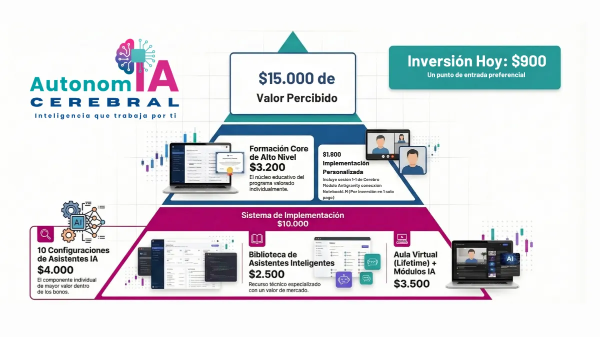 Los bonos de 1 solo pago: Sesión 1-1 (2 horas) para creación de Cerebro Digital, y acceso a módulo Antigravity conexión NotebookLM se activará luego del día 7, junto con los demás bonos del programa (Periodo de Garantía).