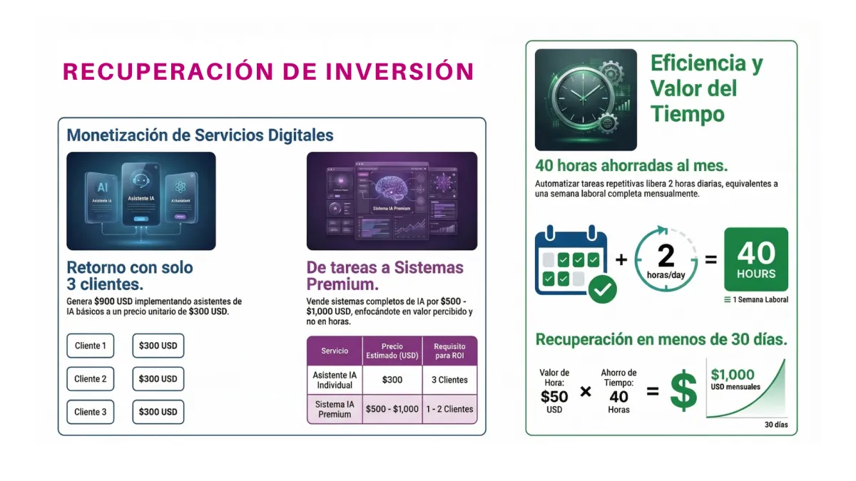 🤖Implementación guiada: No solo aprendes, construyes. Cada módulo está diseñado para que salgas con sistemas funcionando en tu día a día.