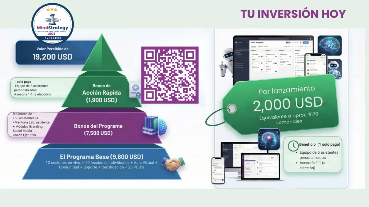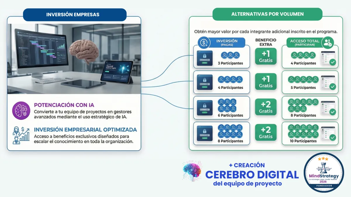 🤖Clases en Vivo: 12 mentorías estratégicas en vivo Sesiones en vivo enfocadas en Gestión de Proyectos, Programas y PMO potenciados con IA, donde trabajas casos reales, toma de decisiones y aplicación práctica (martes, 2 horas).